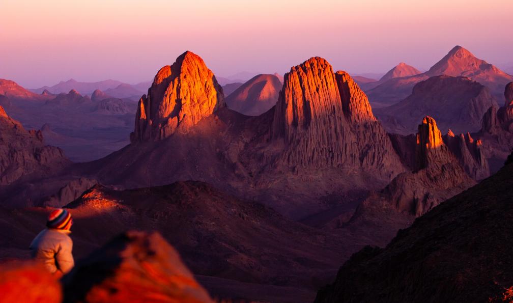 Assekrem est un village situé dans les montagnes près du Hoggar, offrant une vue imprenable sur les paysages environnants. Depuis Assekrem, un sentier de randonnée vous mène au sommet du mont Tefedest, une ascension de 4 heures qui vous permettra de découvrir des panoramas spectaculaires sur le désert algérien. En chemin, les randonneurs passeront par des formations rocheuses remarquables, comme le rocher de l'Éléphant et le rocher du Tigre, qui ajoutent une touche magique à l'aventure. Cette randonnée offre un défi physique tout en permettant de s'immerger dans la beauté sauvage du désert et ses paysages impressionnants.